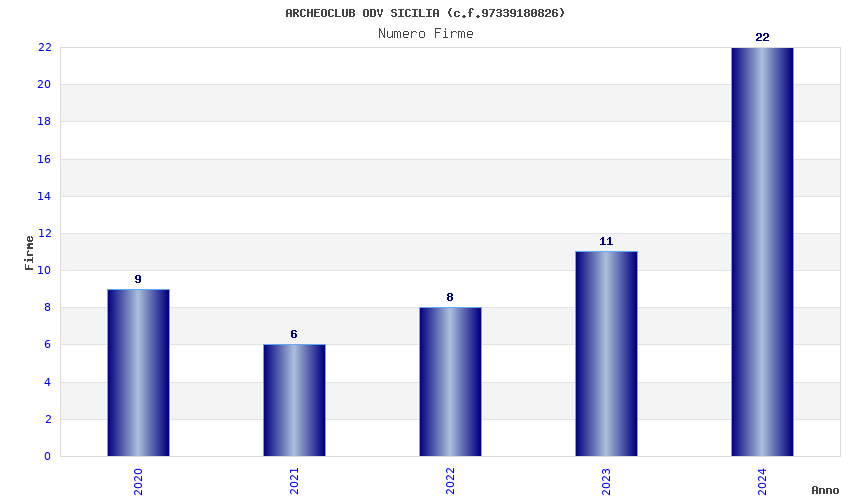 | Anno | Firme | Importi | Media | Naz. | Reg. | Prov. | Comu. |