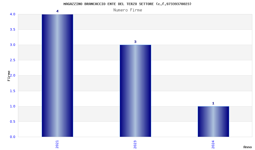 | Anno | Firme | Importi | Media | Naz. | Reg. | Prov. | Comu. |