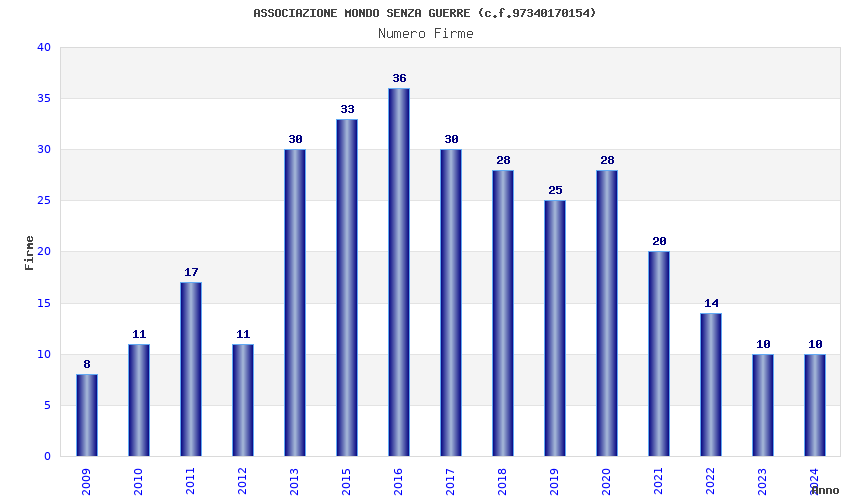 | Anno | Firme | Importi | Media | Naz. | Reg. | Prov. | Comu. |