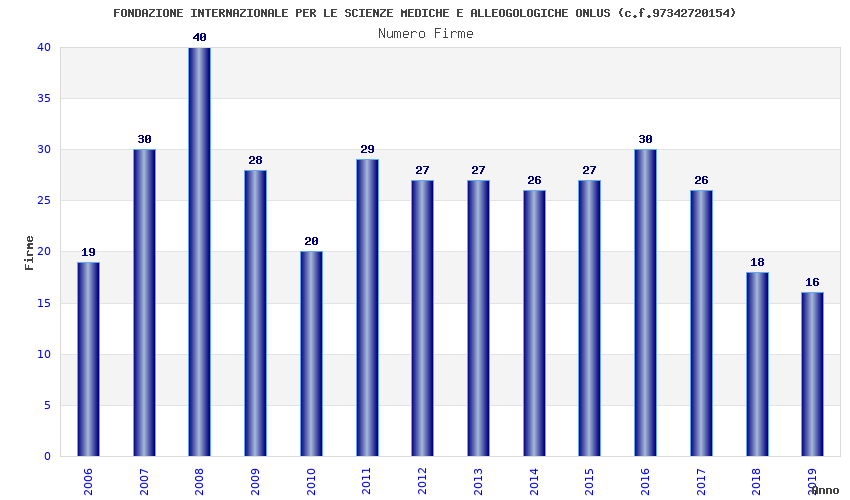 | Anno | Firme | Importi | Media | Naz. | Reg. | Prov. | Comu. |