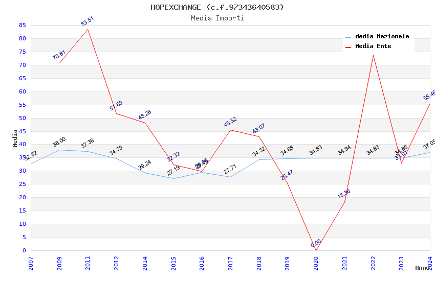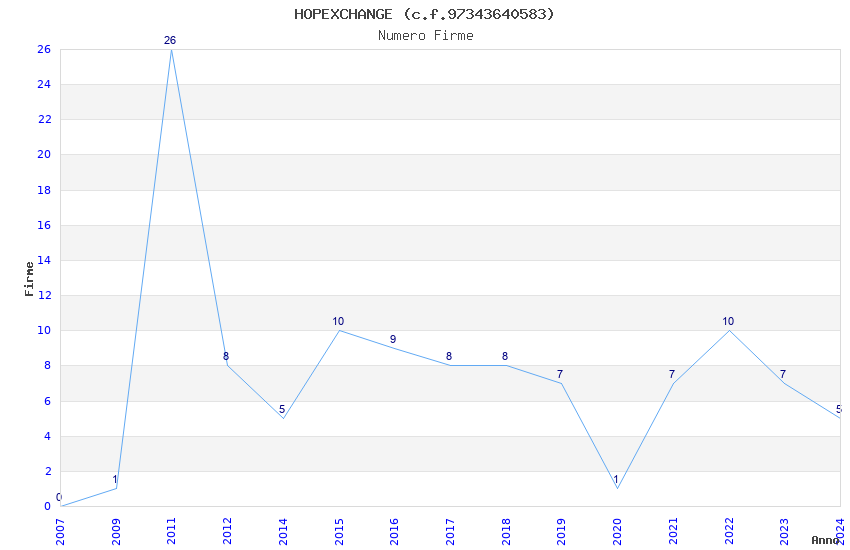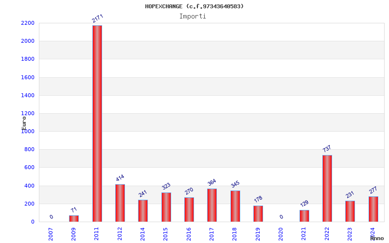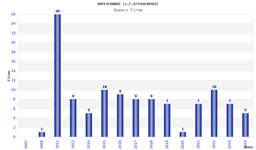 | Anno | Firme | Importi | Media | Naz. | Reg. | Prov. | Comu. |