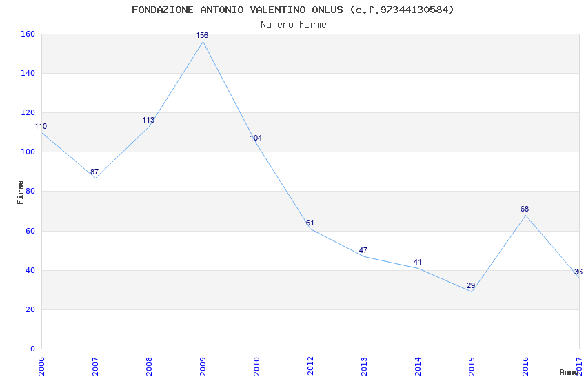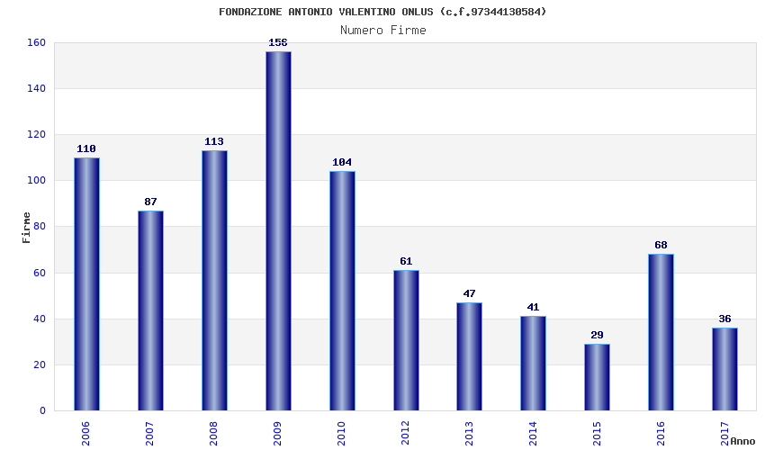 | Anno | Firme | Importi | Media | Naz. | Reg. | Prov. | Comu. |