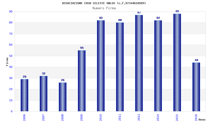 | Anno | Firme | Importi | Media | Naz. | Reg. | Prov. | Comu. |