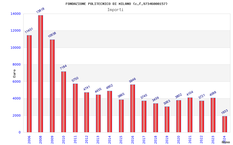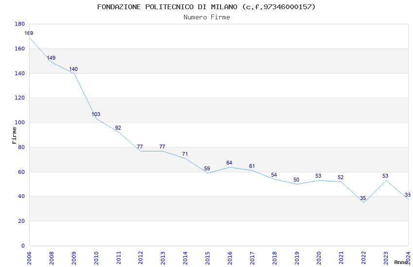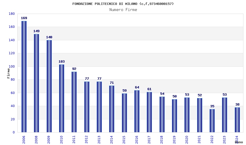 | Anno | Firme | Importi | Media | Naz. | Reg. | Prov. | Comu. |