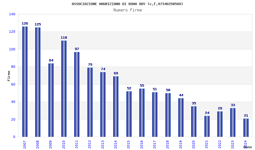 | Anno | Firme | Importi | Media | Naz. | Reg. | Prov. | Comu. |