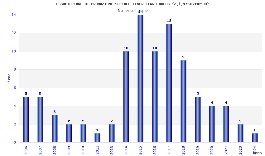 | Anno | Firme | Importi | Media | Naz. | Reg. | Prov. | Comu. |