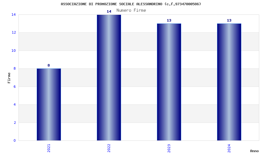 | Anno | Firme | Importi | Media | Naz. | Reg. | Prov. | Comu. |