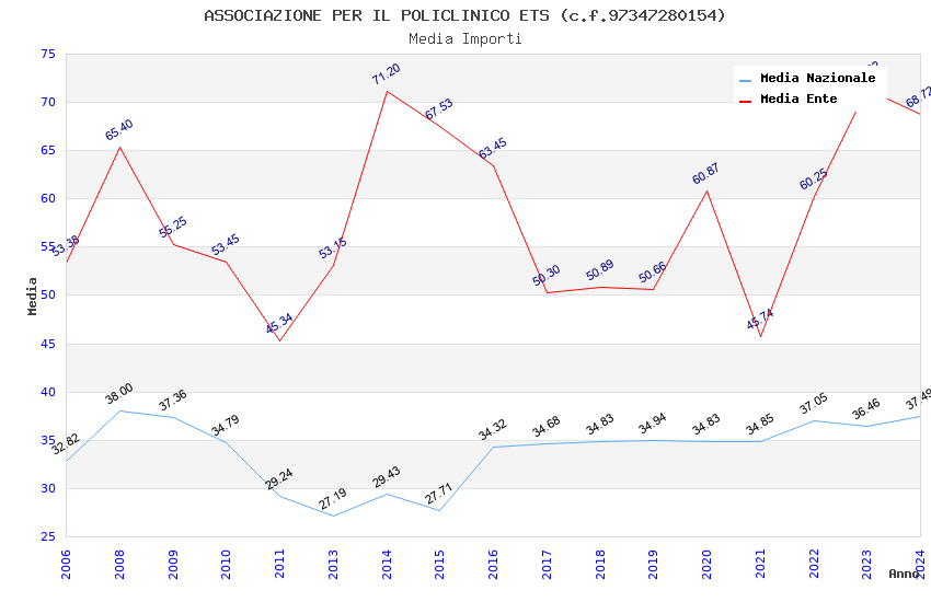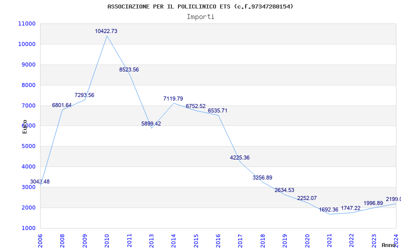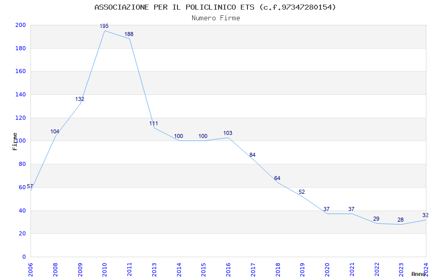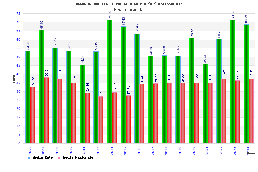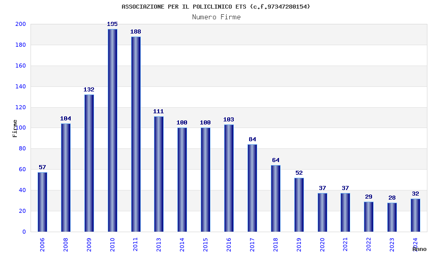 | Anno | Firme | Importi | Media | Naz. | Reg. | Prov. | Comu. |