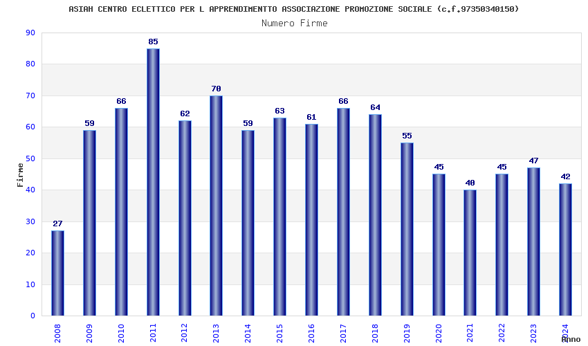 | Anno | Firme | Importi | Media | Naz. | Reg. | Prov. | Comu. |