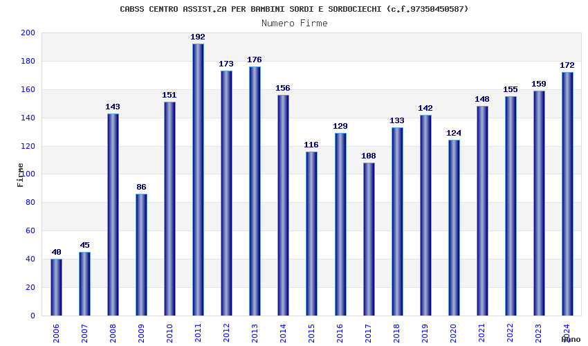 | Anno | Firme | Importi | Media | Naz. | Reg. | Prov. | Comu. |
