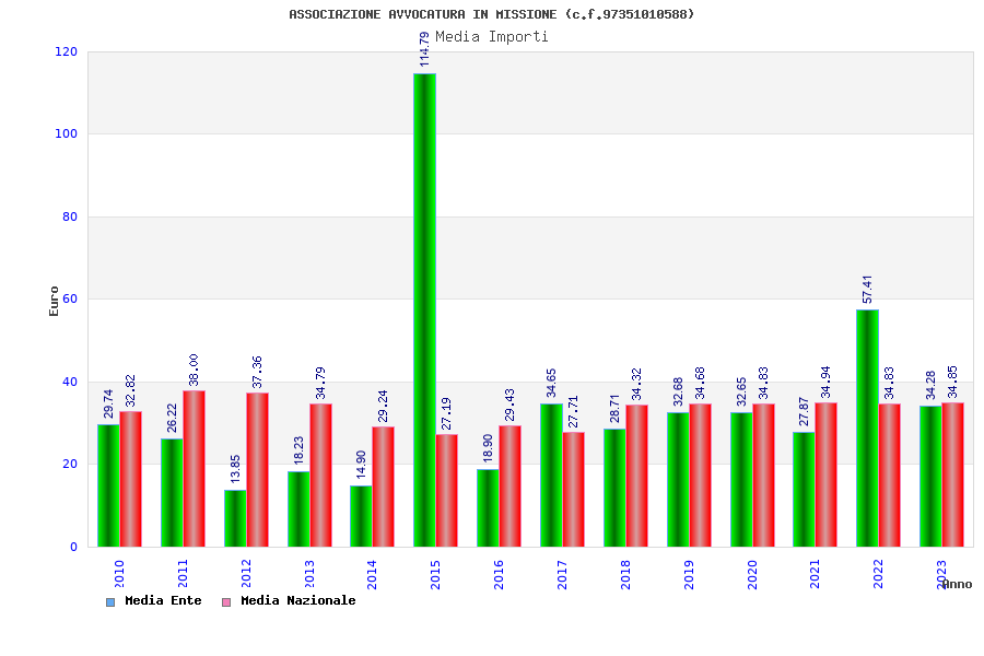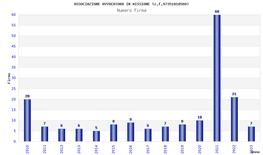 | Anno | Firme | Importi | Media | Naz. | Reg. | Prov. | Comu. |