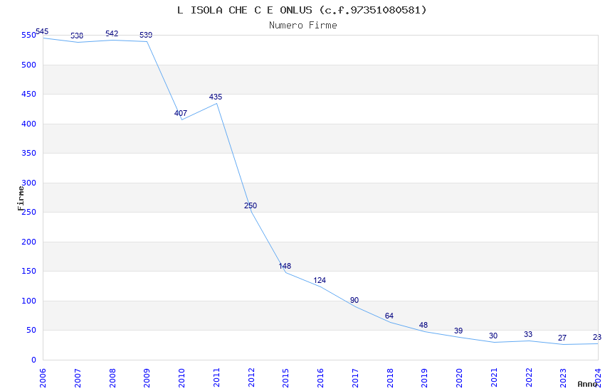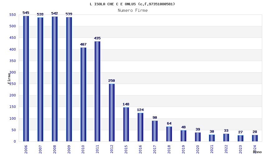 | Anno | Firme | Importi | Media | Naz. | Reg. | Prov. | Comu. |