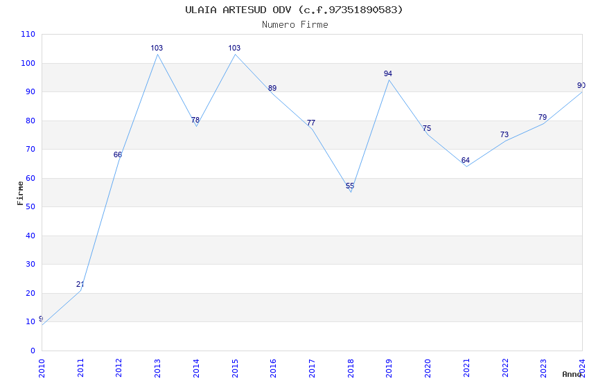 | 2013 | 103 | 3.730,69 | 36,22 | 11.425 | 1.352 | 1.187 | 1.029 |