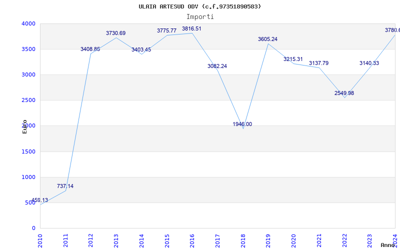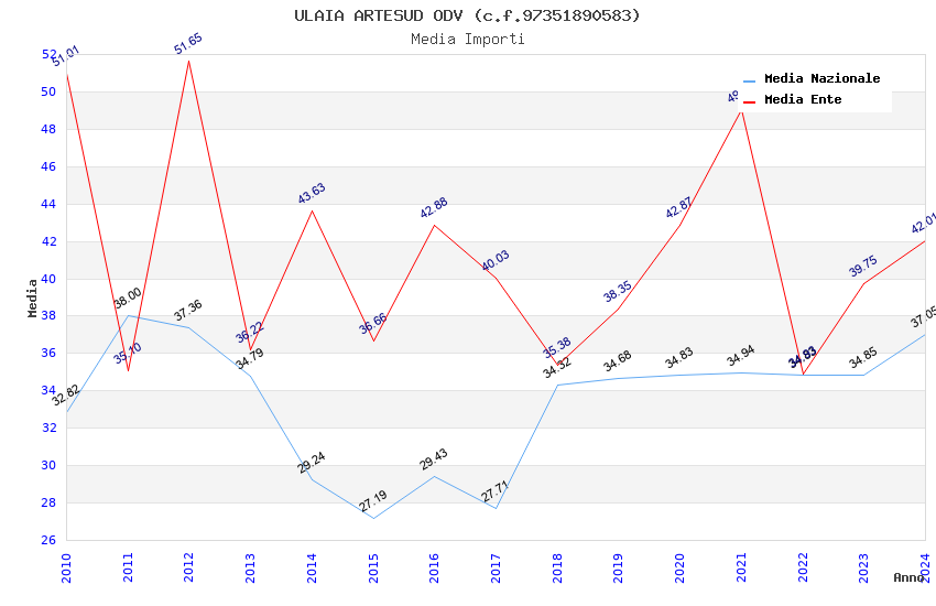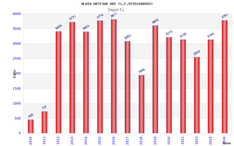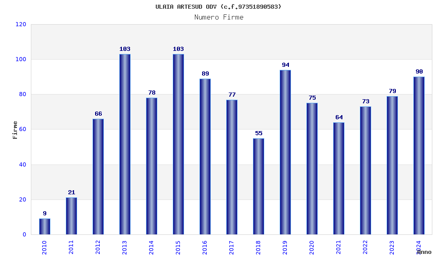 | Anno | Firme | Importi | Media | Naz. | Reg. | Prov. | Comu. |