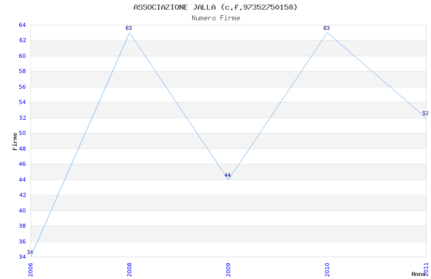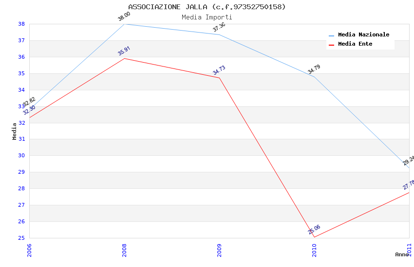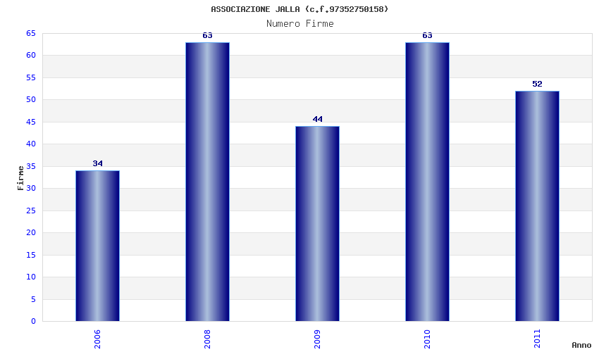 | Anno | Firme | Importi | Media | Naz. | Reg. | Prov. | Comu. |