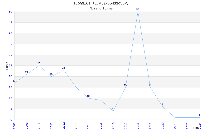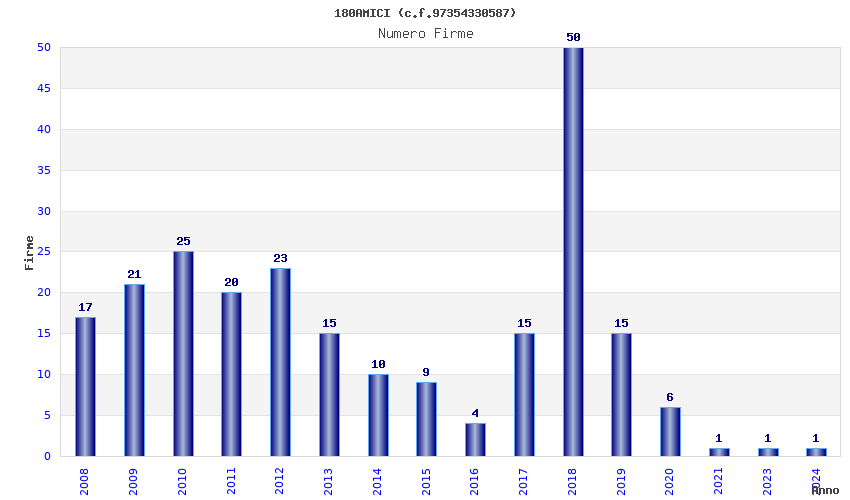 | Anno | Firme | Importi | Media | Naz. | Reg. | Prov. | Comu. |