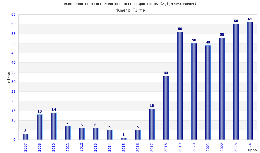 | Anno | Firme | Importi | Media | Naz. | Reg. | Prov. | Comu. |
