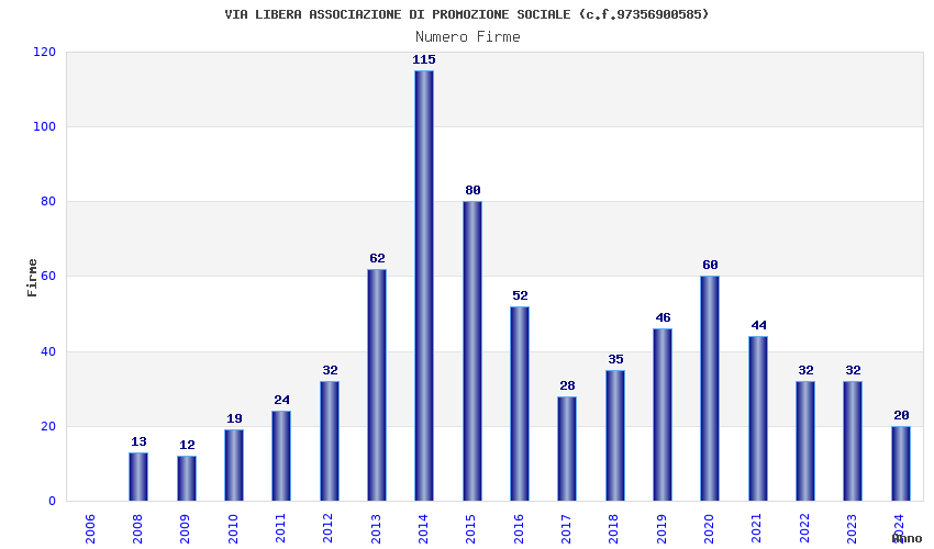| Anno | Firme | Importi | Media | Naz. | Reg. | Prov. | Comu. |
