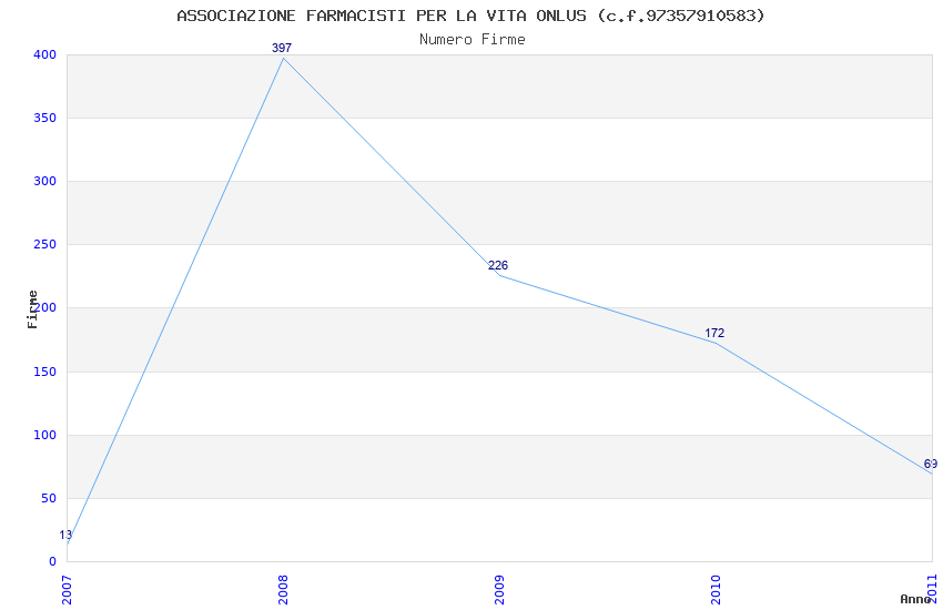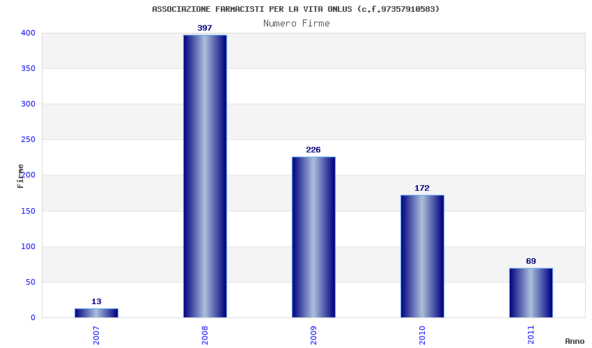 | Anno | Firme | Importi | Media | Naz. | Reg. | Prov. | Comu. |