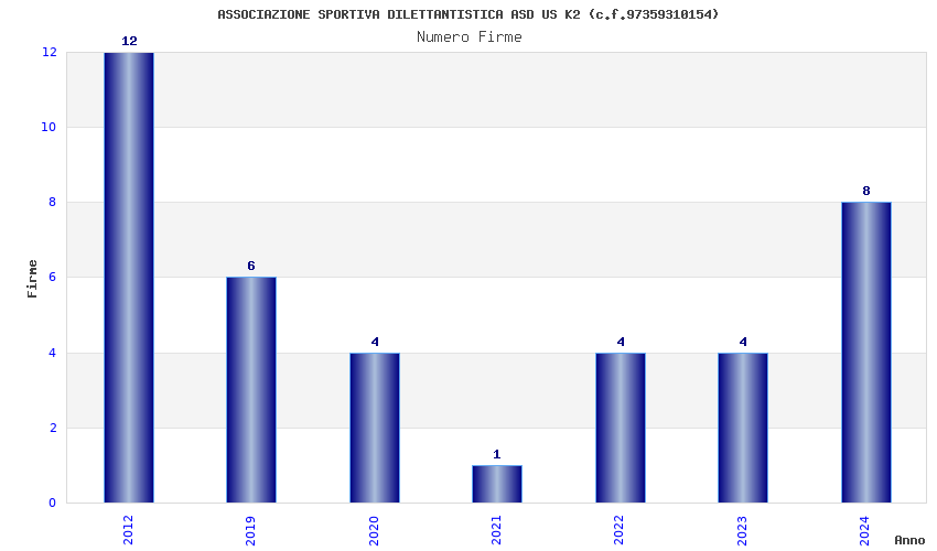 | Anno | Firme | Importi | Media | Naz. | Reg. | Prov. | Comu. |