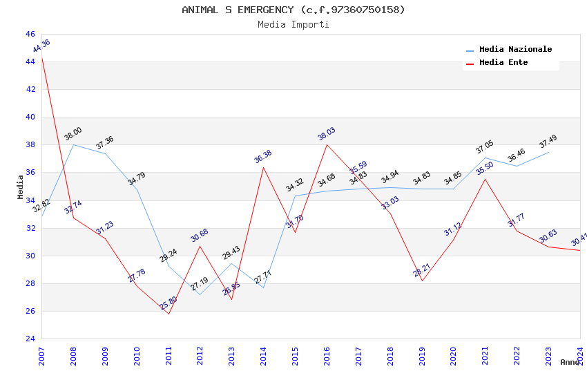 | Anno | Firme | Importi | Media | Naz. | Reg. | Prov. | Comu. |