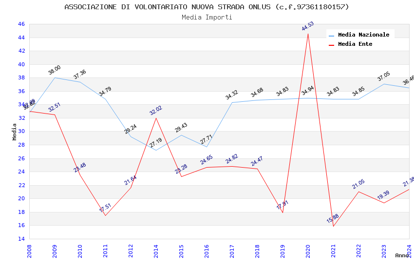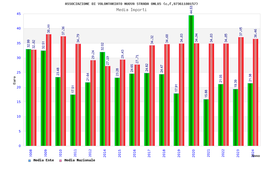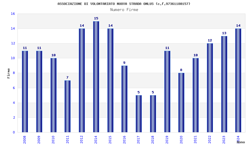 | Anno | Firme | Importi | Media | Naz. | Reg. | Prov. | Comu. |