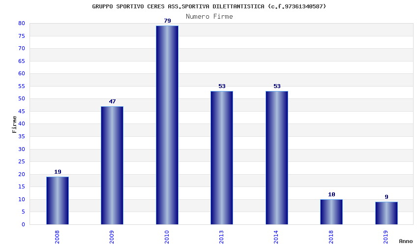 | Anno | Firme | Importi | Media | Naz. | Reg. | Prov. | Comu. |