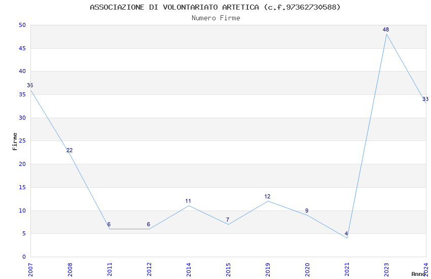 Anno Firme Importi Media Naz. Reg. Prov. Comu.