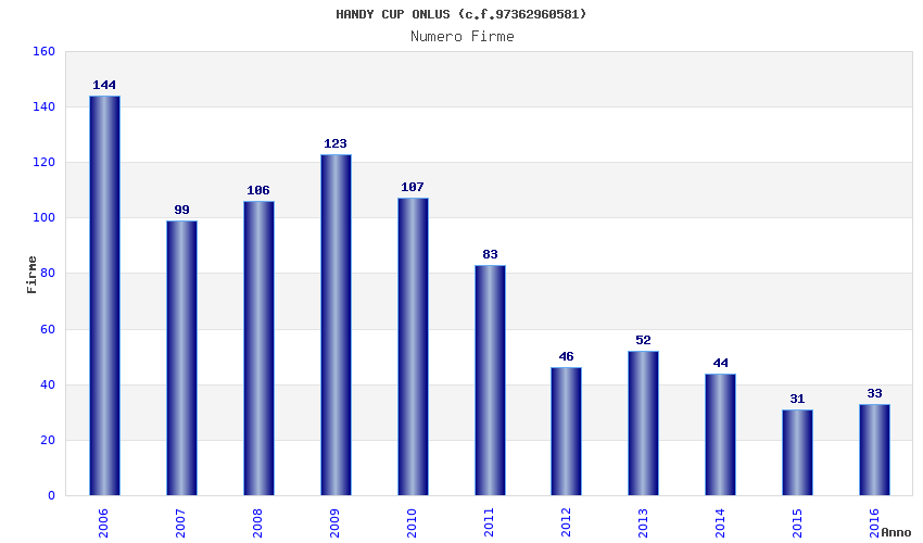 | Anno | Firme | Importi | Media | Naz. | Reg. | Prov. | Comu. |