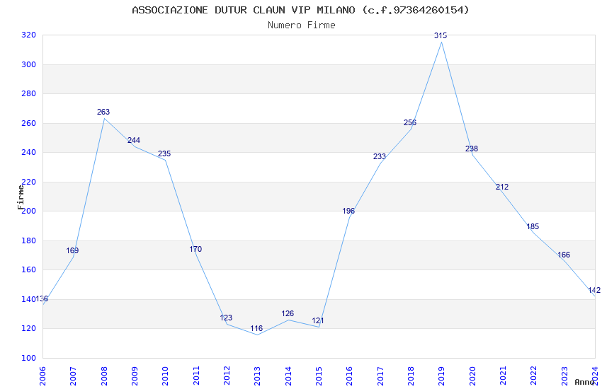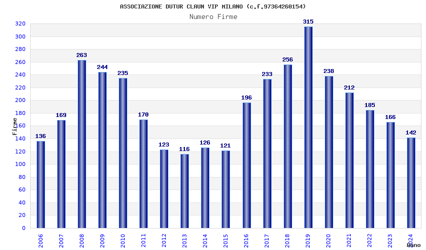 | Anno | Firme | Importi | Media | Naz. | Reg. | Prov. | Comu. |