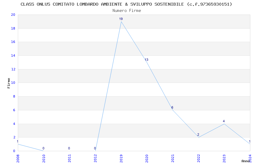 | Anno | Firme | Importi | Media | Naz. | Reg. | Prov. | Comu. |