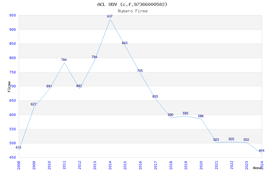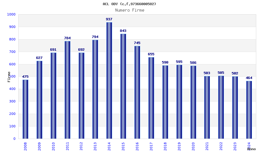 | Anno | Firme | Importi | Media | Naz. | Reg. | Prov. | Comu. |