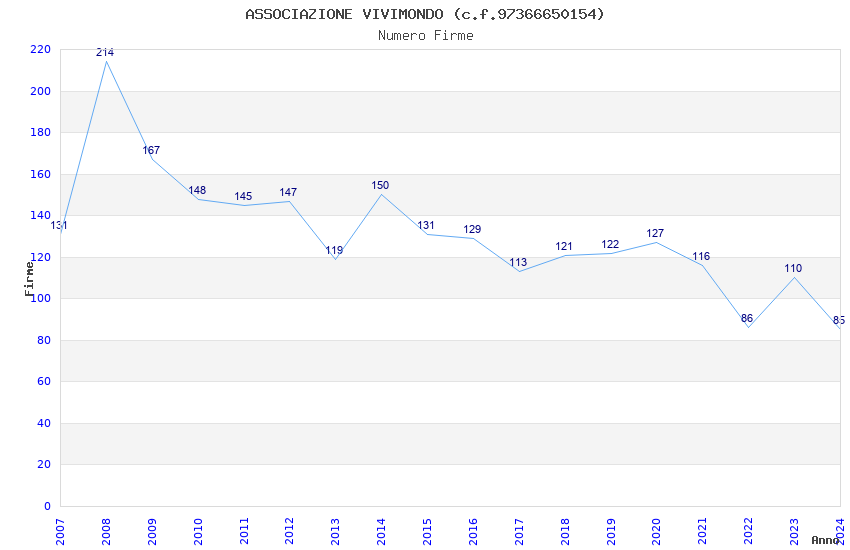 | Anno | Firme | Importi | Media | Naz. | Reg. | Prov. | Comu. |