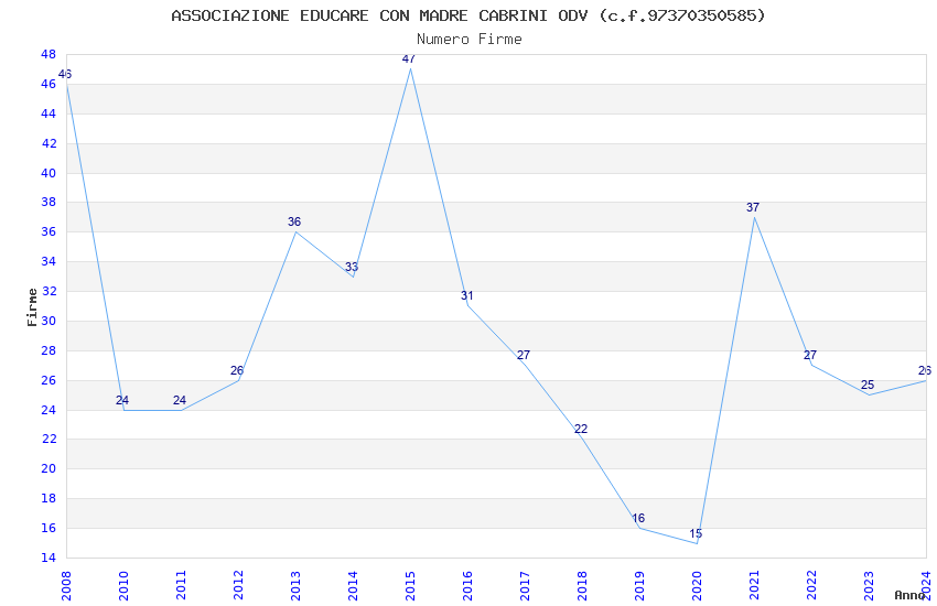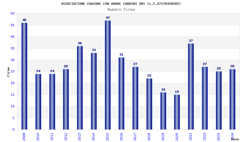 | Anno | Firme | Importi | Media | Naz. | Reg. | Prov. | Comu. |