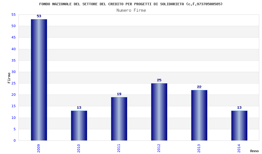 | Anno | Firme | Importi | Media | Naz. | Reg. | Prov. | Comu. |