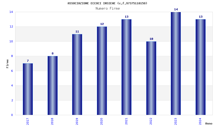 | Anno | Firme | Importi | Media | Naz. | Reg. | Prov. | Comu. |