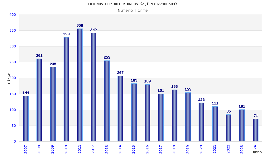| Anno | Firme | Importi | Media | Naz. | Reg. | Prov. | Comu. |
