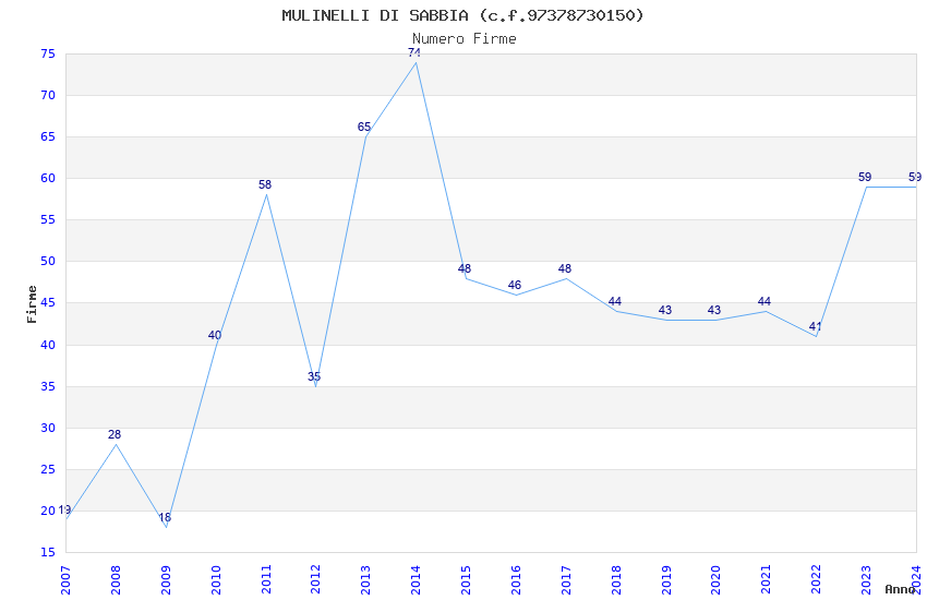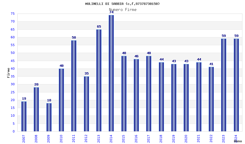 | 2014 | 74 | 2.619,27 | 35,40 | 18.280 | 1.392 | 131 | 4 |