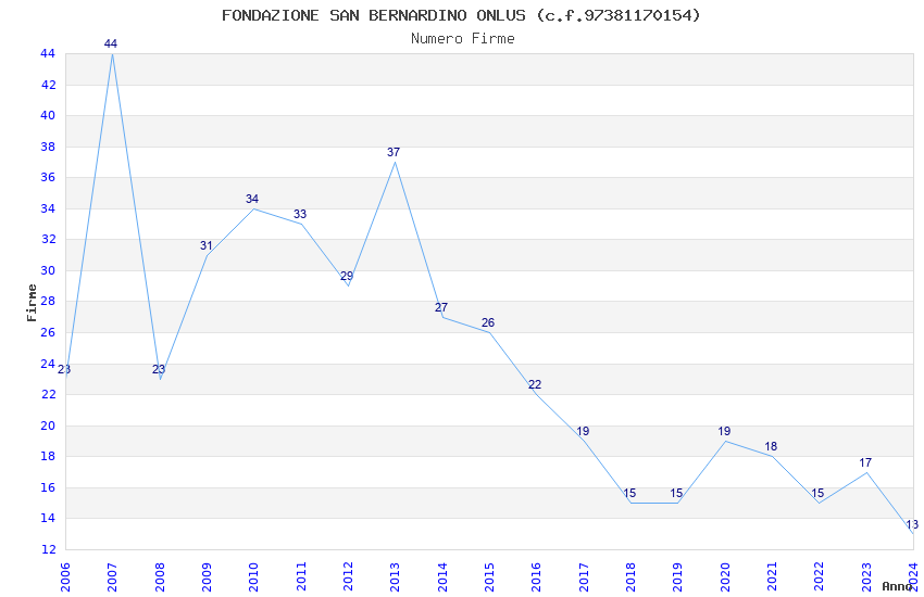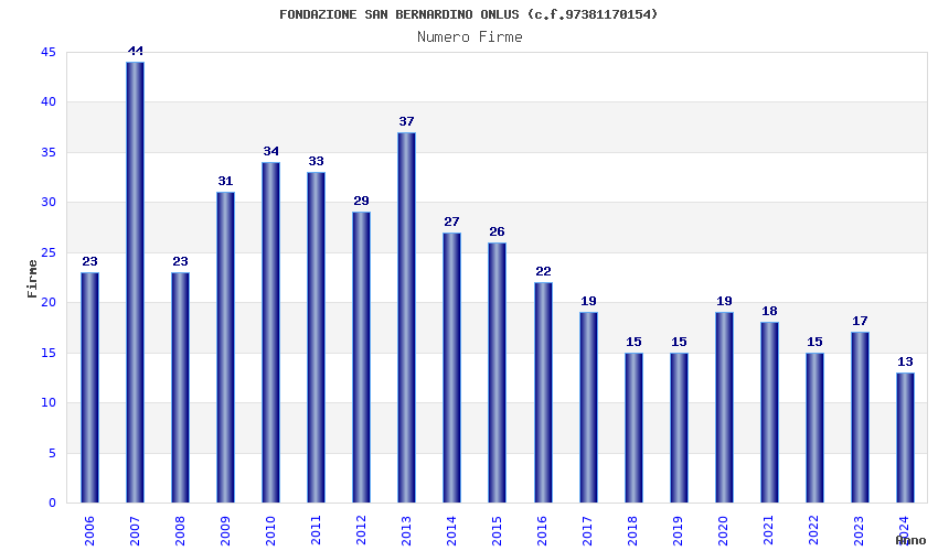 | Anno | Firme | Importi | Media | Naz. | Reg. | Prov. | Comu. |