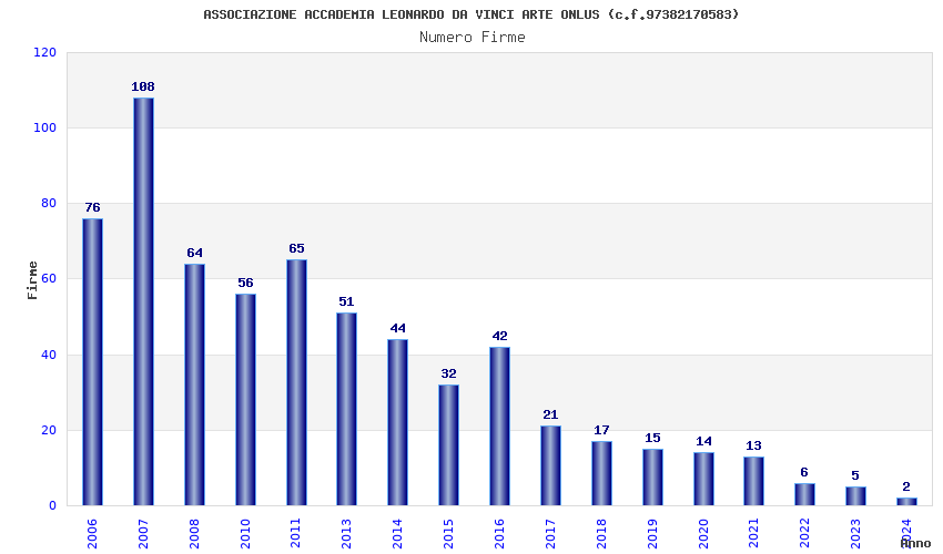 | Anno | Firme | Importi | Media | Naz. | Reg. | Prov. | Comu. |