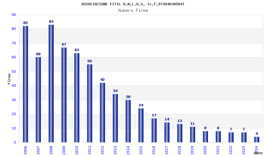 | Anno | Firme | Importi | Media | Naz. | Reg. | Prov. | Comu. |