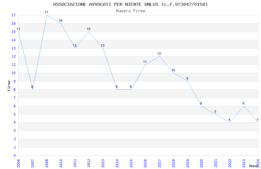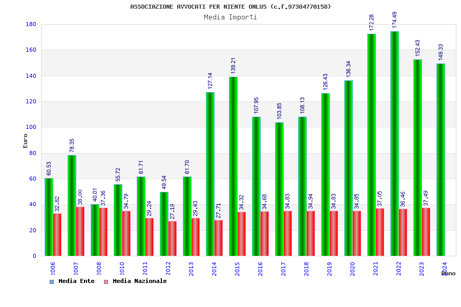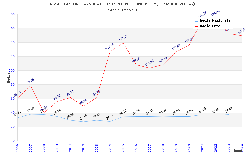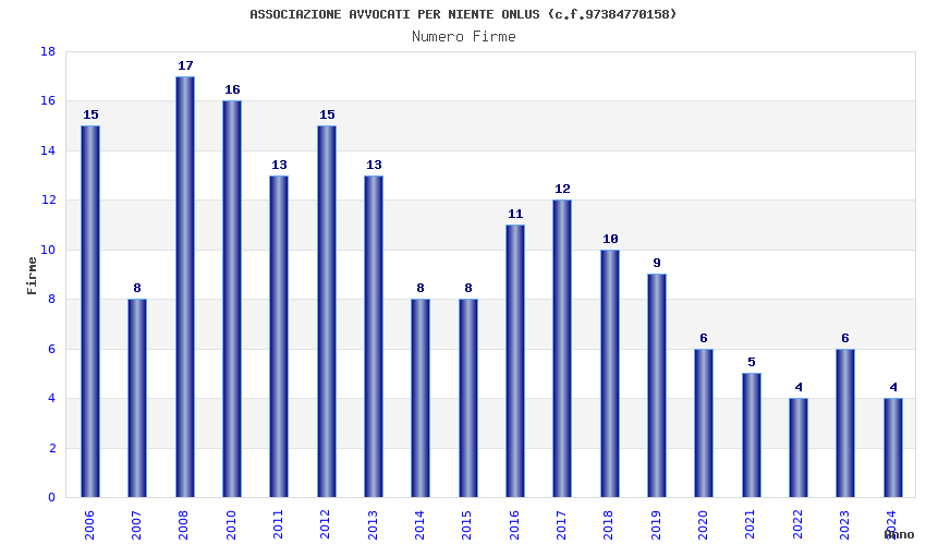 | Anno | Firme | Importi | Media | Naz. | Reg. | Prov. | Comu. |