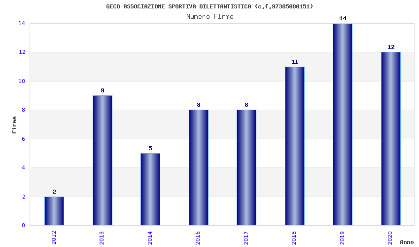 | Anno | Firme | Importi | Media | Naz. | Reg. | Prov. | Comu. |
