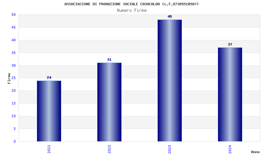 | Anno | Firme | Importi | Media | Naz. | Reg. | Prov. | Comu. |