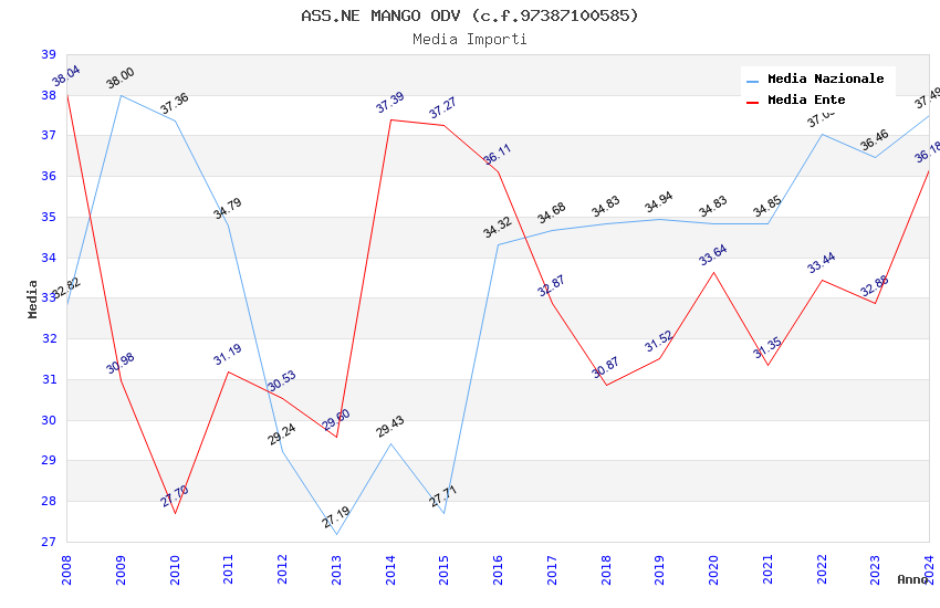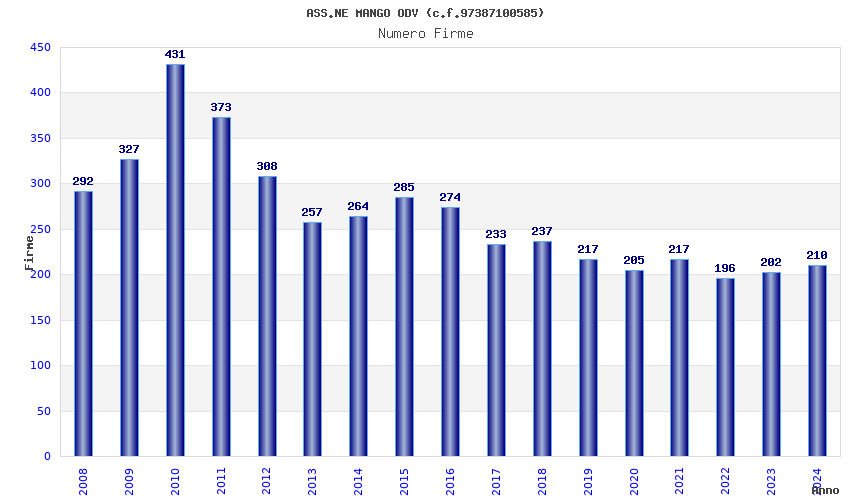 | Anno | Firme | Importi | Media | Naz. | Reg. | Prov. | Comu. |