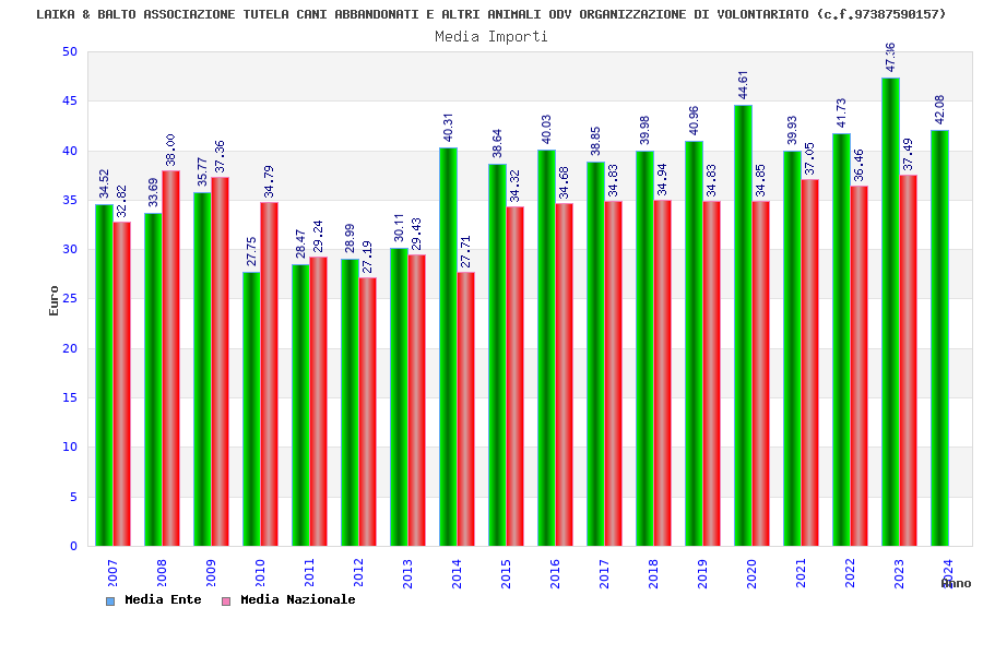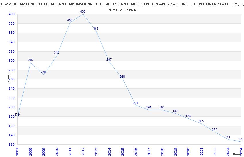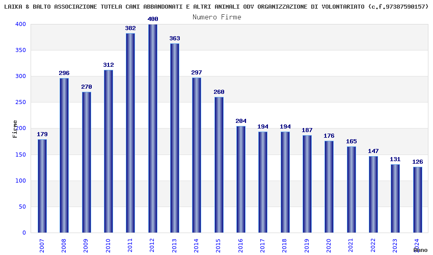 | Anno | Firme | Importi | Media | Naz. | Reg. | Prov. | Comu. |