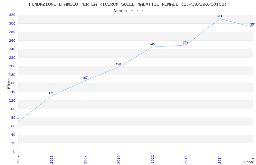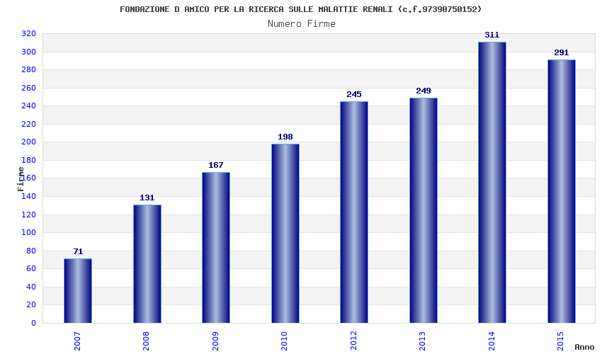 | Anno | Firme | Importi | Media | Naz. | Reg. | Prov. | Comu. |