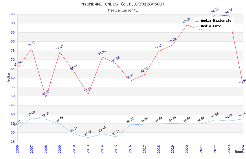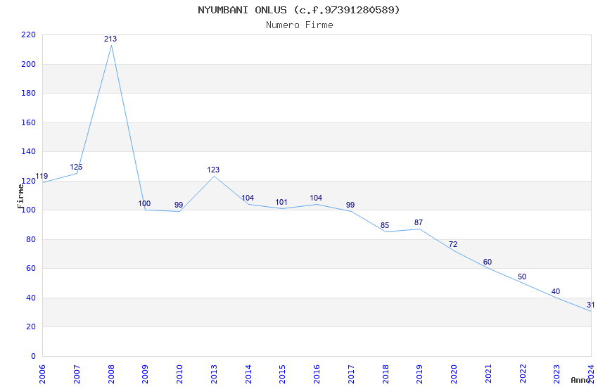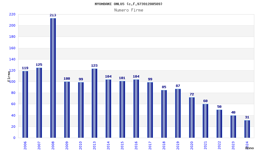 | Anno | Firme | Importi | Media | Naz. | Reg. | Prov. | Comu. |