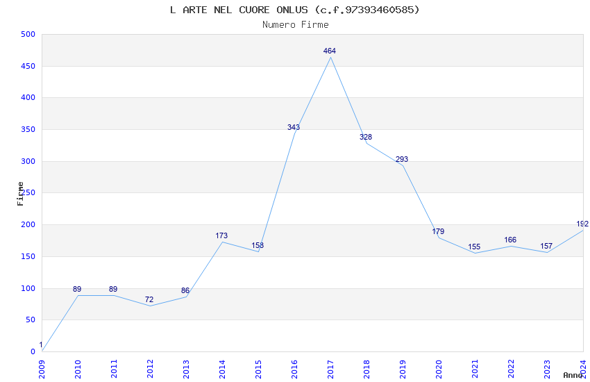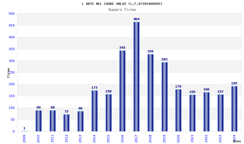 | Anno | Firme | Importi | Media | Naz. | Reg. | Prov. | Comu. |
