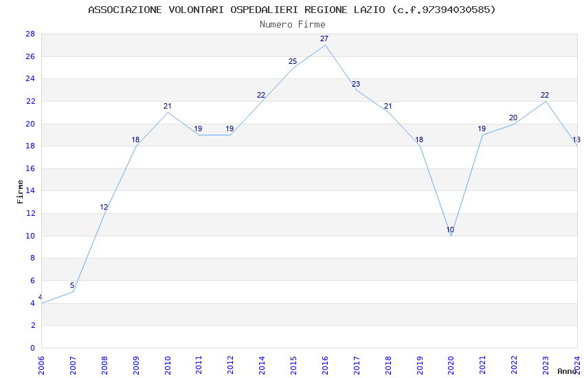 | Anno | Firme | Importi | Media | Naz. | Reg. | Prov. | Comu. |